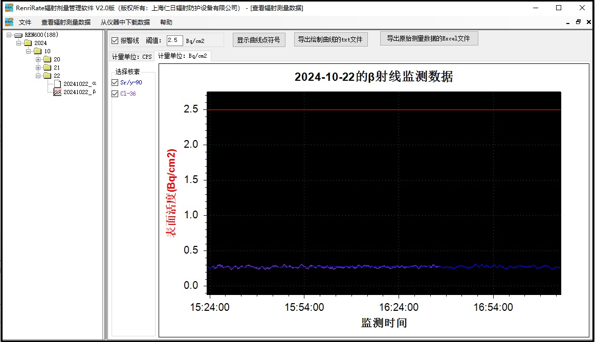 产品描述: REN300B在线辐射安全报警仪是一种新型的x-γ辐射连续监测报警装置,它采用特殊设计的前置放大电路,具有灵敏度高、操作方便、自动显示和超阈值报警等特点,能实时给出xγ辐射剂量率;仪器内置海量数据存储功能,能存储10年的历史数据且标配提供强大的RenLocal辐射监测数据分析软件。考虑